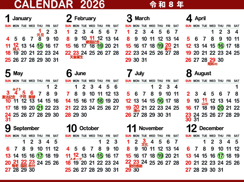 (感謝)このカレンダーは「まなびっと」様のページの「相思鼠(そうしねず)のカレンダー」に祝日名を追加しました。