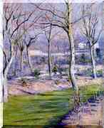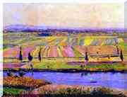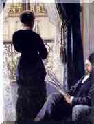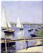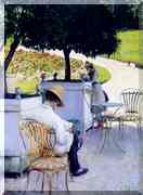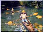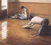 ギュスターヴ・カイユボットは富裕な生まれで、自らも絵を描き、かつ印象派の画家たちの絵を買い求めたり、「印象派展」に経済的援助を与えたり、若い画家達の活動を助けました。カイユボットの初期の作品「床削りの人々」は、サロン展(官展)には「粗野すぎる」として落選しましたが、今日では彼の代表作として高く評価されています。ルノワールの「舟遊びをする人々の昼食」では、画面手前で椅子に反対向きに腰掛け、快活そうに話をしている人物がカイユボットです。