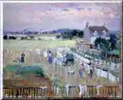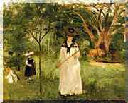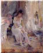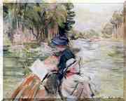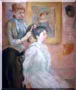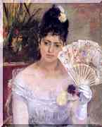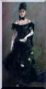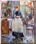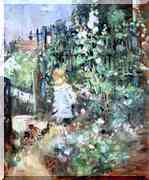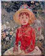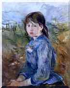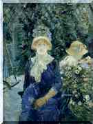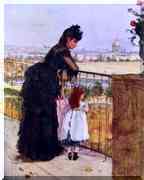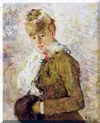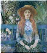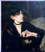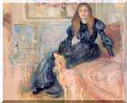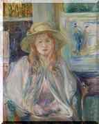 ベルト・モリゾは印象派の女性画家。コローなどに師事して23才でサロン(官展)に入選、その後マネに師事して、8回開かれた「印象派展」に7回作品を出品しています。マネを始め、多くの画家のモデルにもなっています。マネの弟のウジェーヌ・マネと結婚し一女をもうけ、夫と娘も作品に多く登場しています。素早い筆裁きと大胆なタッチで、人物の瞬間の表情をよく捉え、19世紀にあって、女性らしい視点から描かれた作品の数々は、近年特に注目されています。