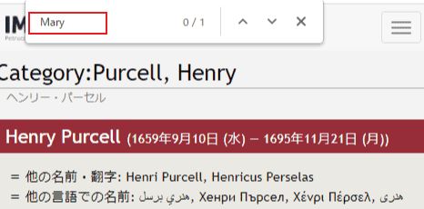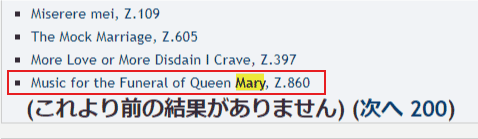 曲名がはっきりしないので、事前に作曲者や曲名に関する単語をアルファベットで確認する。ここでは、Henry Purcell や Mary など。「ページ検索」も使う。