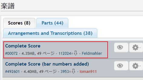 - スコアーのPDFファイルをクリックする