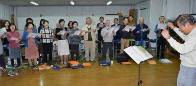 記念演奏会を控えた9日夜、田川市の教育文化会館には、メンバーにOBを加えた約40人による「大きな古時計」や「翼をください」などのハーモニーが響いていた。51年に合唱団に入った牛嶋操さん(83)=田川市=は「みんな仲が良くて雰囲気がいい。何度もステージに立っているけど本番はやっぱり緊張しますよ」と話していた。