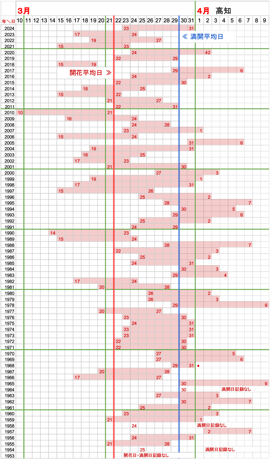 - 開花平均日・満開平均日