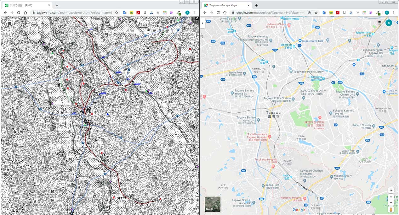 地図を二つ並べて、新旧を較べる(PC・タブレットの場合)。